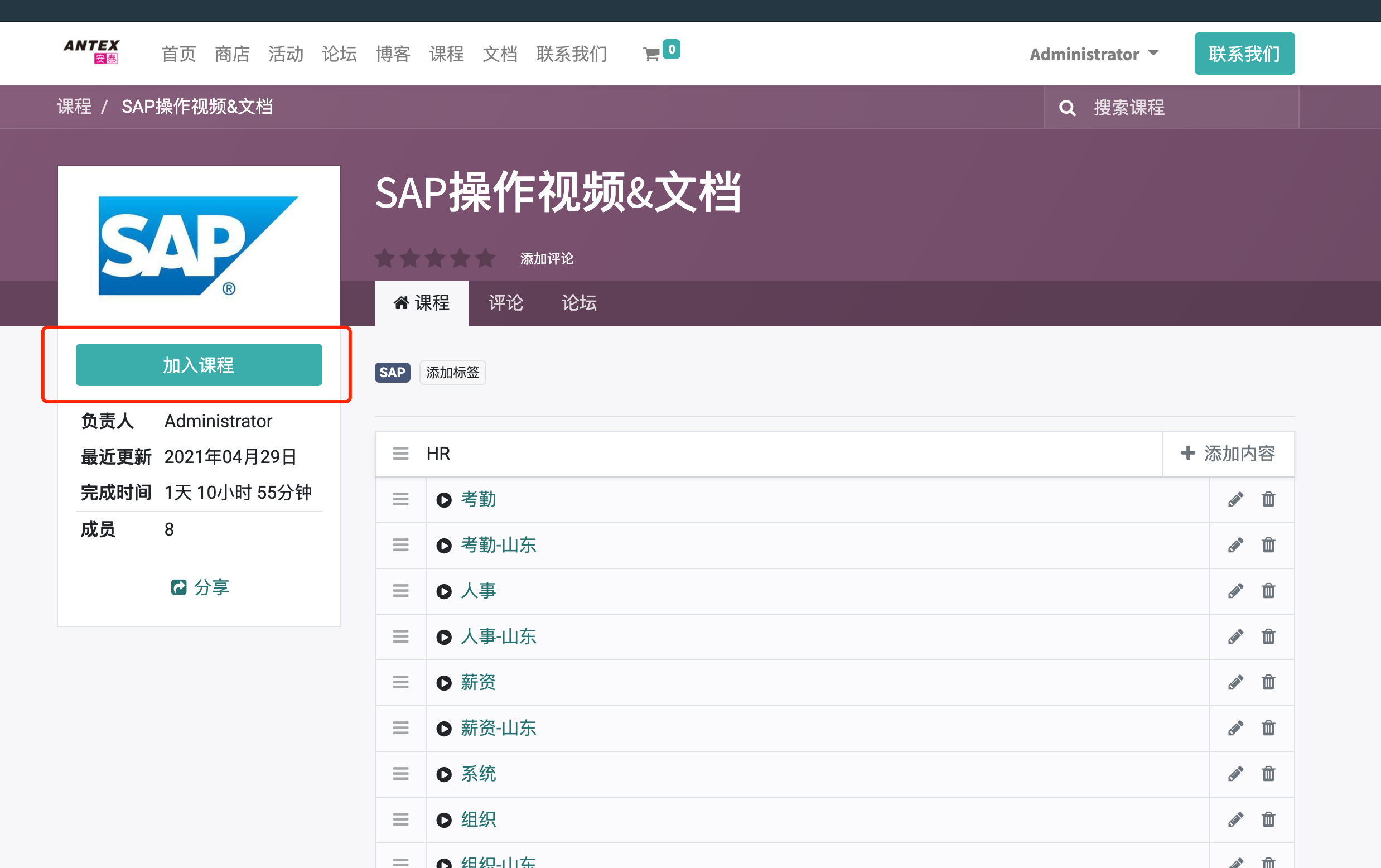 点击想要学习的课程,然后点击加入课程,就可以查看当前课程下的所有视频和文档,见图1-2