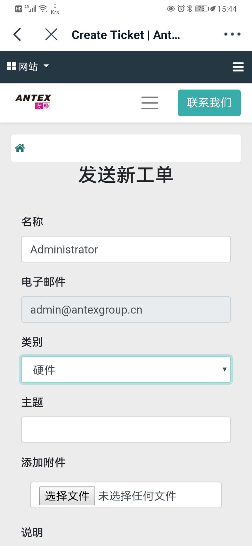 选择您问题的类别,输入主题,并在说明中详细描写您的问题,如有附件请使用选择文件上传