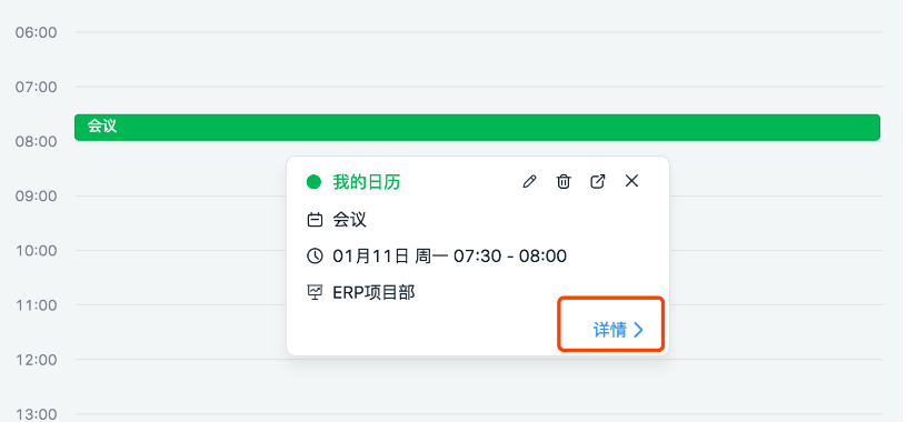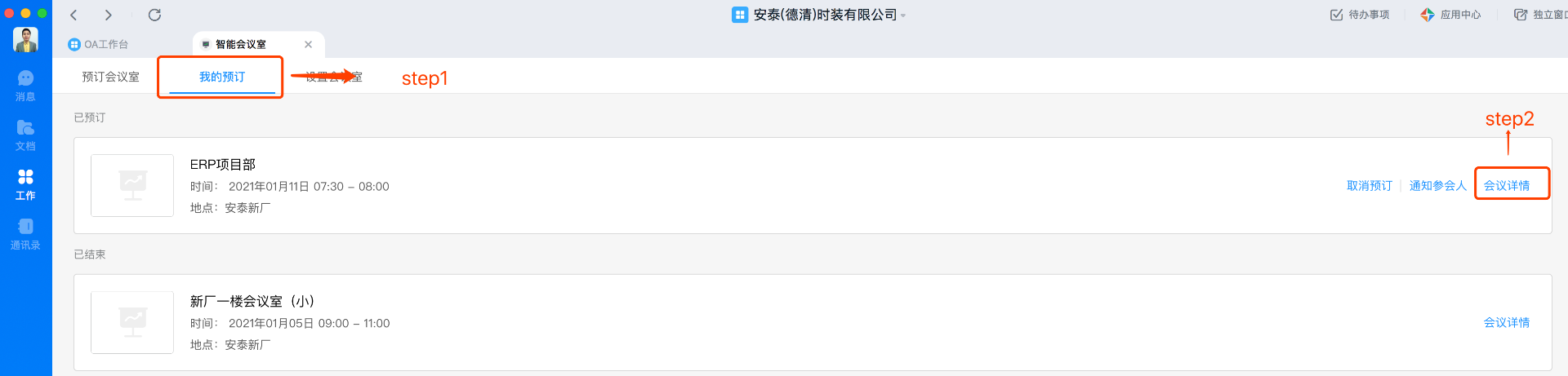 点击我的预订,找到预订的会议室,然后点会议详情进入。见图 2-1