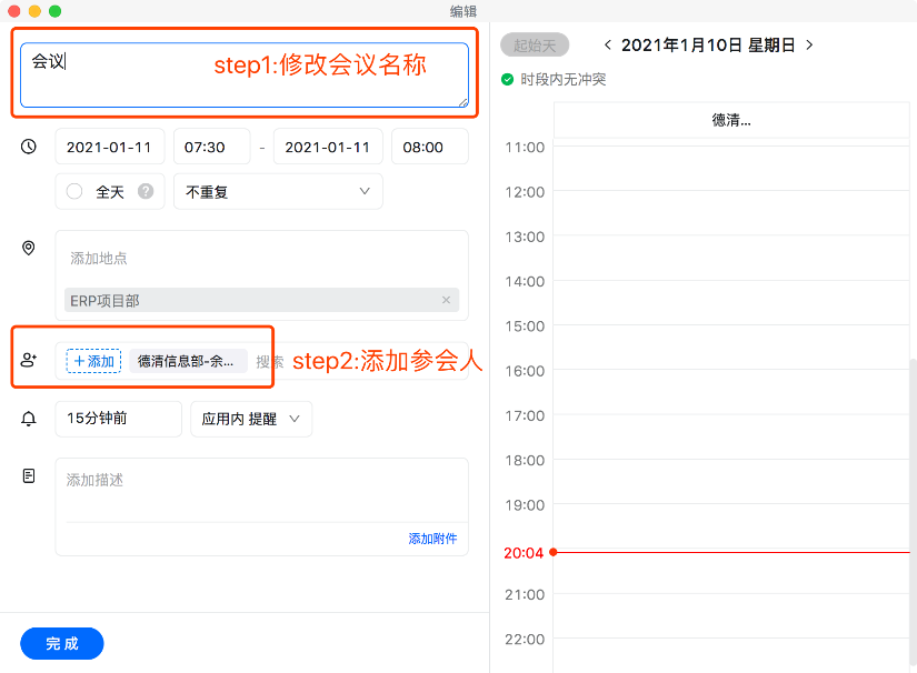 修改会议名称,通知参会人,会议预约完成。见图1-4