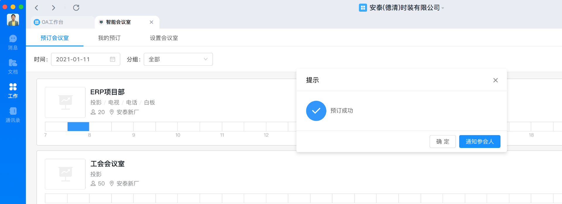 打开钉钉工作台,选择正确的公司组织,然后选择找到智能会议室。见图1-1